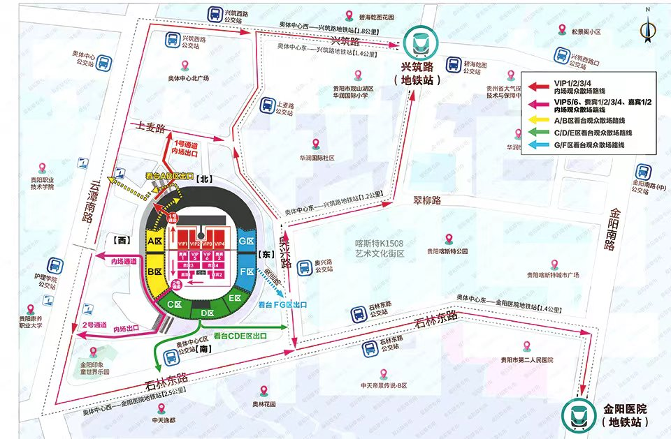 据悉,针对前期市民群众吐槽的通道少、疏散慢、停车难、环境乱等问题,市区两级成立工作专班,坚持把安全放在首位,围绕增加指示标识、疏散路线,以及优化交通接驳、周边环境治理等重点,进一步细化贵阳奥体中心周边业态规划布局,科学做好现场指挥、秩序维护、线路规划、运力组织等各项工作。