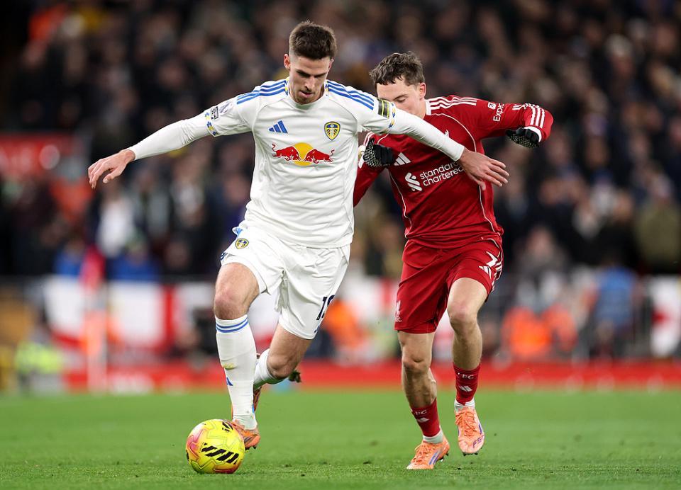 此役,维尔茨出任左边锋。开场仅14分钟,德国天才便错失良机。当时埃基蒂克倚开防守后横传,维尔茨近距离的推射被利兹联防守球员封堵。