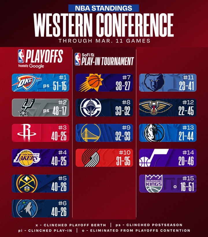 今日6场NBA常规赛全部战罢,来看看今日赛后的排名变化吧: