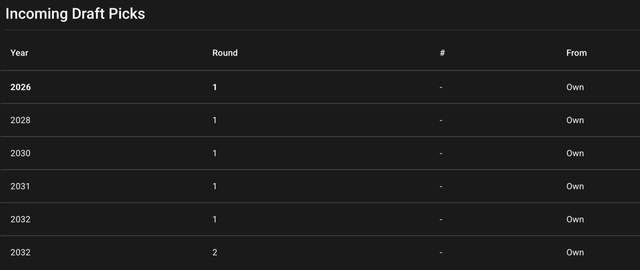 湖人现在次轮也只剩下1个,就算2026选秀夜开启之后,2033年的选秀签也进入交易许可期,那也只有2个次轮可以交易。