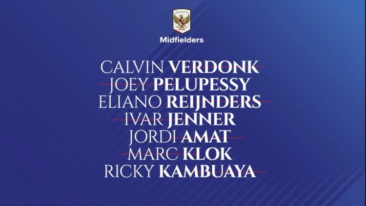 中场:费尔东克(里尔)、佩卢佩西(洛默尔)、小赖因德斯(万隆)、伊瓦尔·詹纳(德瓦联)、阿马特(佩西亚雅加达)、马克·克洛克(万隆)、坎布瓦亚(德瓦联)、苏莱曼(佩西亚雅加达)、埃吉·维克里(德瓦联)、盖彭斯(埃门)、阿克汉·菲克里(阿雷马)、瓦利安(谏义里佩西克)、维克多·迪森(PSM马卡萨‌)